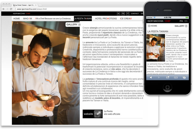Un sito è mobile solo se le pagine, gli elementi che le compongono, la posizione dei menu e l’articolazione dei contenuti sono ottimizzati ed adattati alla fruizione su smartphone (e tablet).
